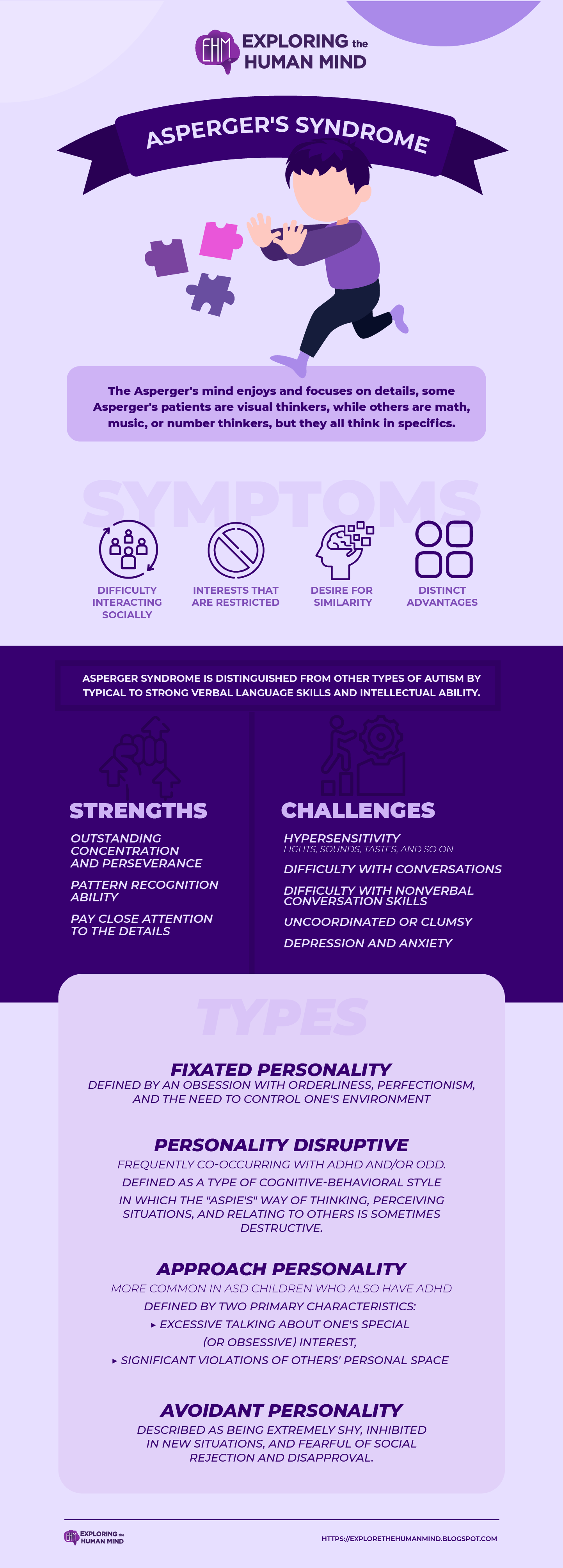 Asperger’s Syndrome: Symptoms, Diagnosis and Treatment. (2023). Nationwidechildrens.org. https://www.nationwidechildrens.org/conditions/aspergers-syndrome#:~:text=Asperger%27s%20Syndrome%2C%20a%20form%20of,can%20be%20rigid%20and%20repetitive.