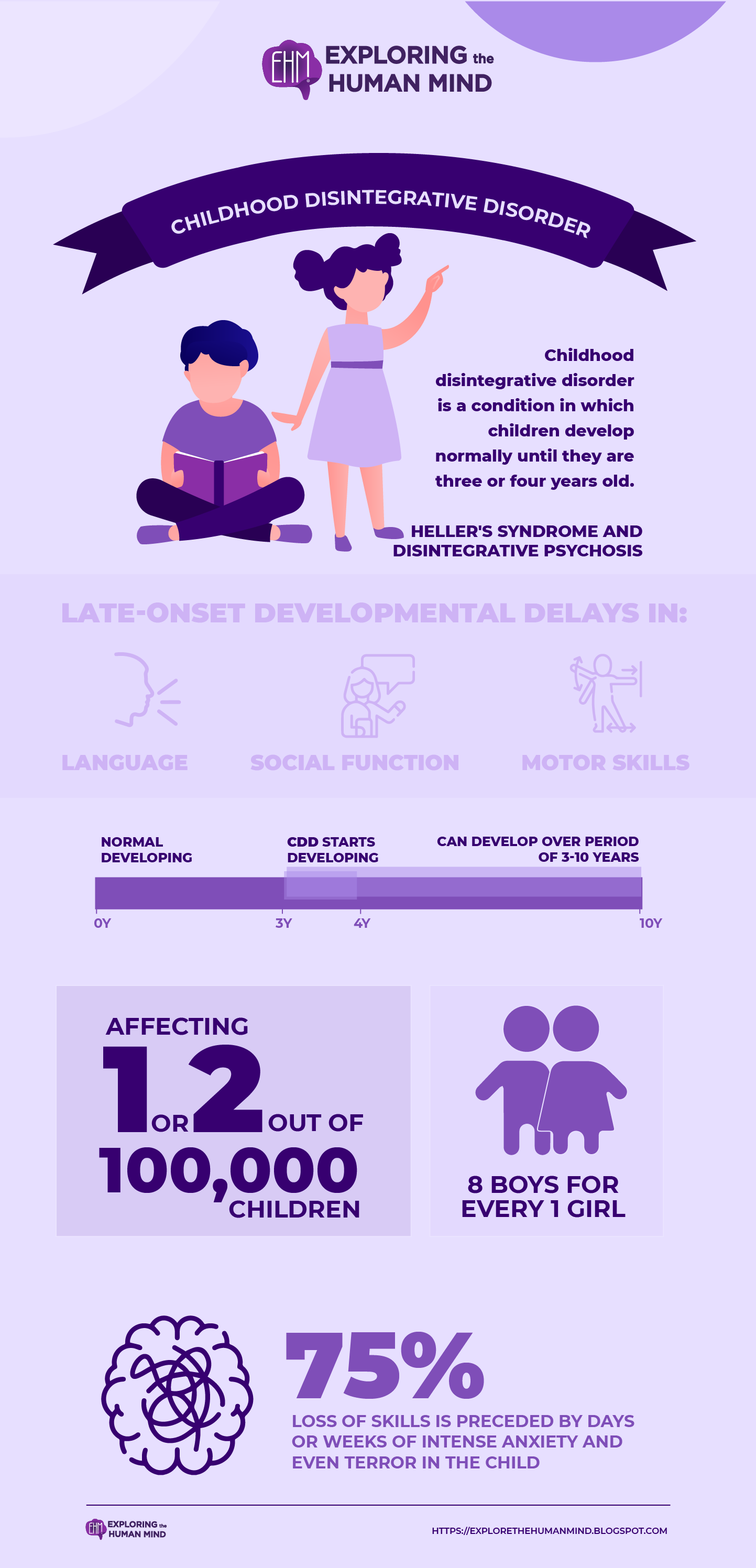 Childhood disintegrative disorder is a condition in which children develop normally until they are three or four years old. Then, over time, they lose language, motor, social, and other previously learned skills.