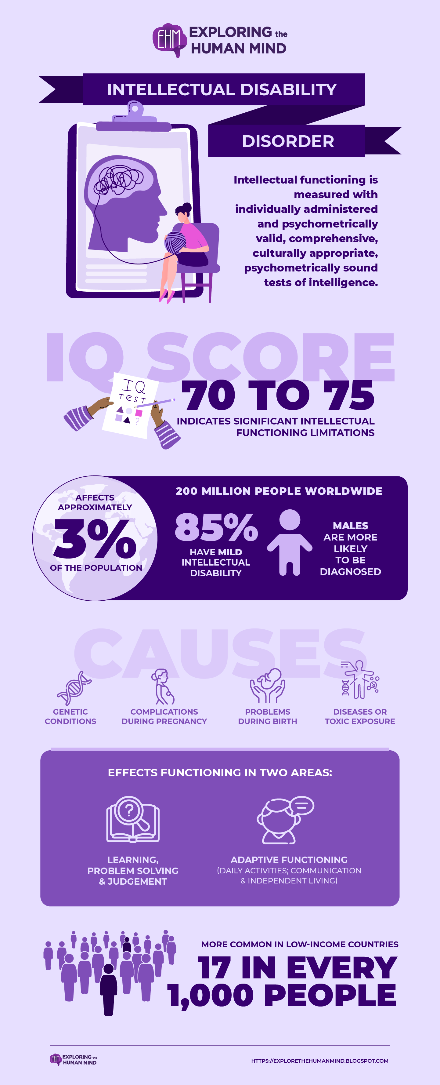 What is Intellectual Disability? (2023). Psychiatry.org. https://www.psychiatry.org/patients-families/intellectual-disability/what-is-intellectual-disability CDC. (2019, October 25). Facts About Intellectual Disability. Centers for Disease Control and Prevention. https://www.cdc.gov/ncbddd/developmentaldisabilities/facts-about-intellectual-disability.html