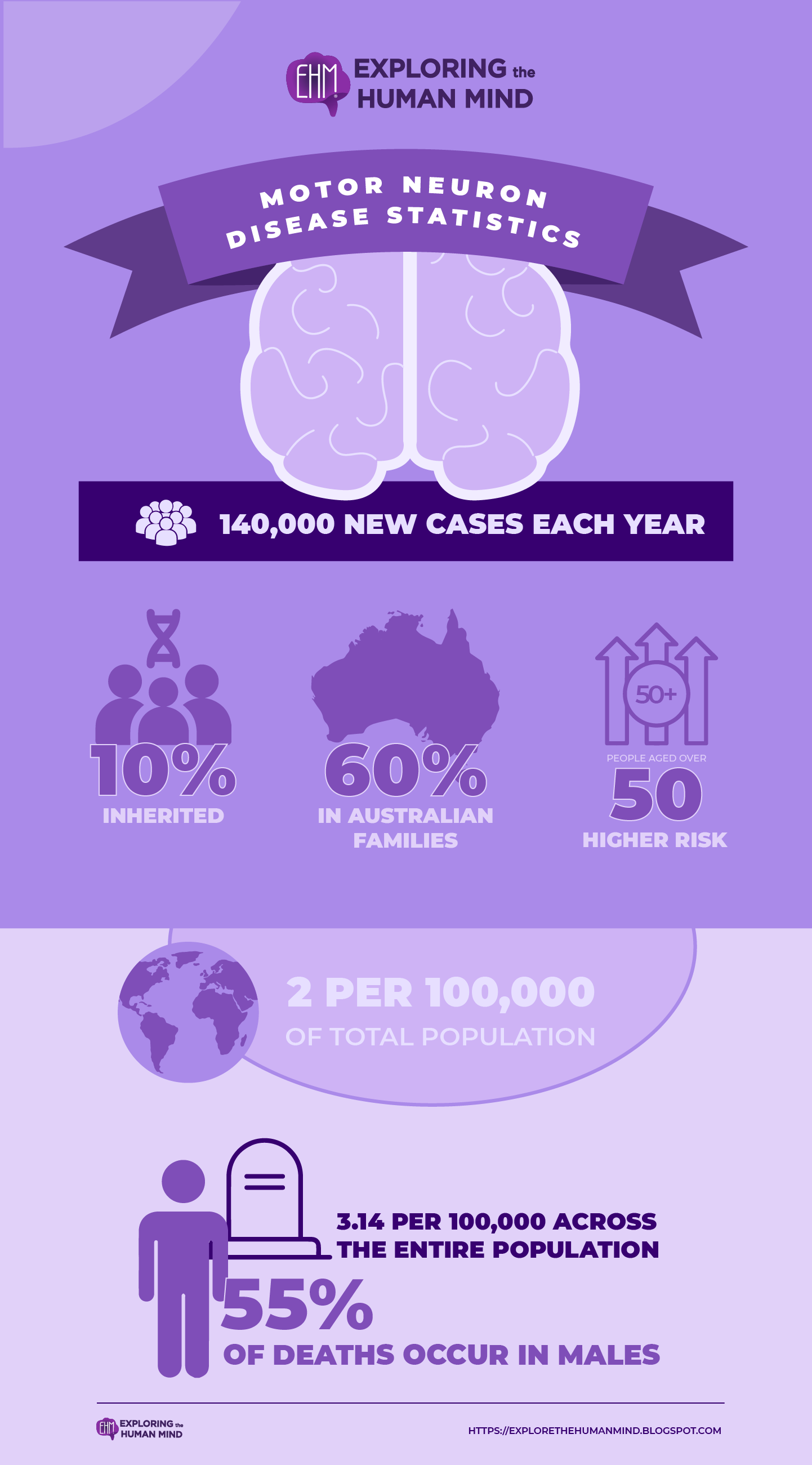 Most of these cases is now known in Australian families. However, new research indicates that many sporadic cases have a genetic component.The incidence is 2 per 100,000 of the total population worldwide, while the prevalence is around 6 per 100,000 of the total population. According to research, the incidence is higher in people over the age of 50. Despite being classified as a rare disease in terms of prevalence, it is estimated that approximately 140,000 new cases are diagnosed globally each year. The lifetime risk of developing ALS/MND has been calculated to be one in three hundred.