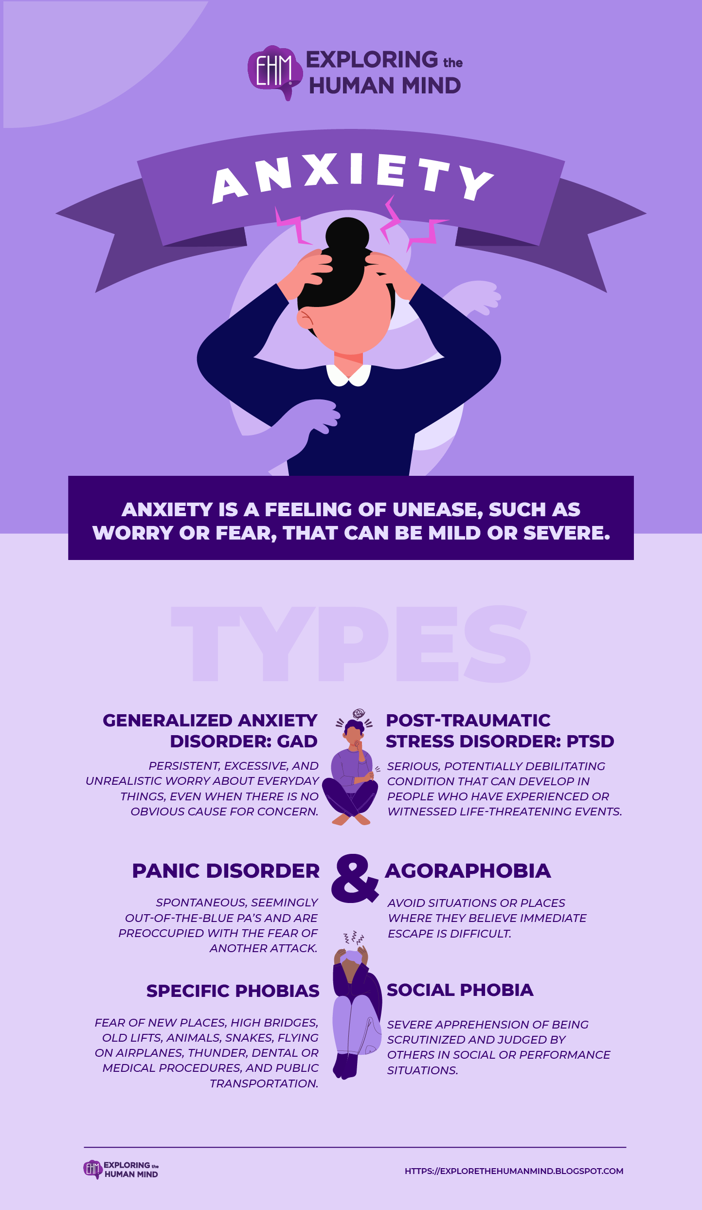 Anxiety disorders - Symptoms and causes. (2018). Mayo Clinic; https://www.mayoclinic.org/diseases-conditions/anxiety/symptoms-causes/syc-20350961#:~:text=Anxiety%20disorder%20due%20to%20a,%E2%80%94%20even%20ordinary%2C%20routine%20issues. Anxiety Spectrum Disorders - The Mathers Clinic. (2021, January 5). The Mathers Clinic. https://themathersclinic.com/our-services/anxiety-spectrum-disorders/