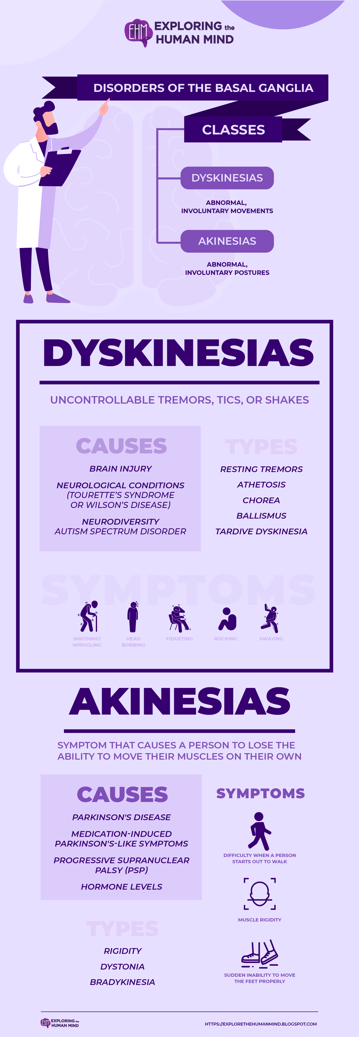 Huizen, J. (2017, October 19). What you need to know about dyskinesia. Medicalnewstoday.com; Medical News Today. https://www.medicalnewstoday.com/articles/319744#types-and-causes
